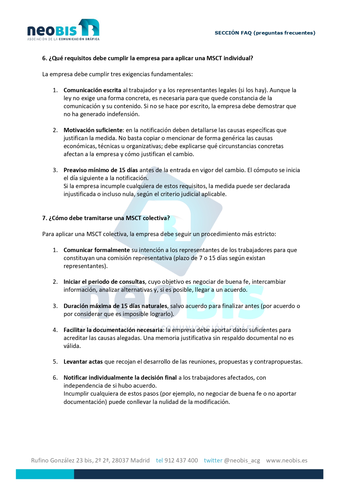 Sección FAQ: Modificaciones Sustanciales de las Condiciones de Trabajo (MSCT)